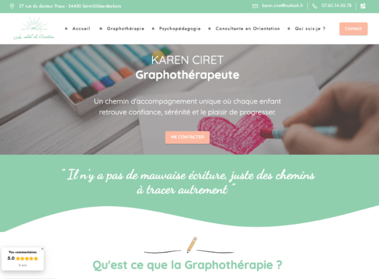 Mon expérience de graphothérapeute me permet de comprendre les attentes des familles qui recherchent un professionnel, et ainsi de concevoir des sites rassurants, professionnels et adaptés à notre pratique.